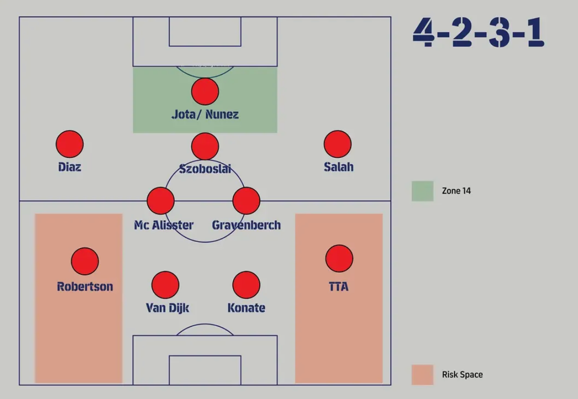 슬롯 감독은 네덜란드 페예노르트에서 보여준 4-2-3-1 및 4-3-3 시스템을 리버풀에 도입했다. 그 전술의 중심은 ‘하이라인과 전방 압박’이다. 이에 따라 수비수들은 다음과 같은 역할을 수행해야 한다.